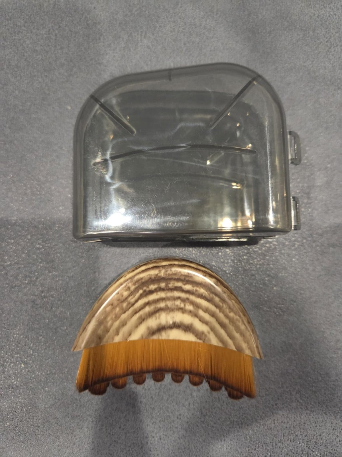 To clean your brush, gently wash the bristles with a mild facial cleanser or gentle soap and lukewarm water. Rinse thoroughly to remove any buildup, then let it air dry completely in a clean, well-ventilated area before your next use.